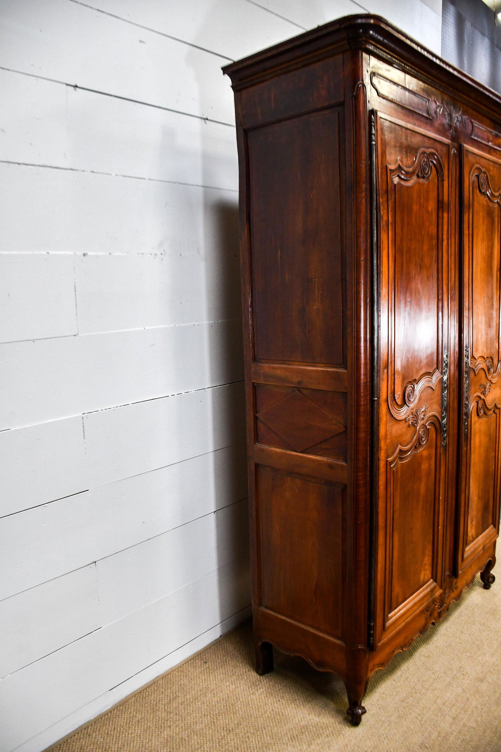 Carved Walnut Bevel Mirror Wardrobe Armoire With Rope Turn Columns
