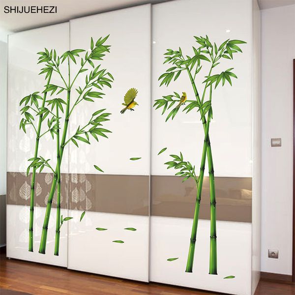 Acheter Bambou Plante Oiseaux Verts Pastorale Style Autocollant Mural Pour Salle D Etude Armoire Chambre Decor Art Mural De 17 96 Du Kareem12