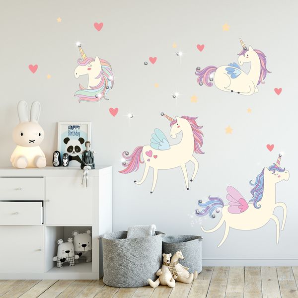 Acheter Autocollant Mural Autocollant Decoratif De Chambre Pour Enfants Licorne Decoratif Avec 20 Cristaux Etincelants Armoire Meuble Deco De 6 01 Du
