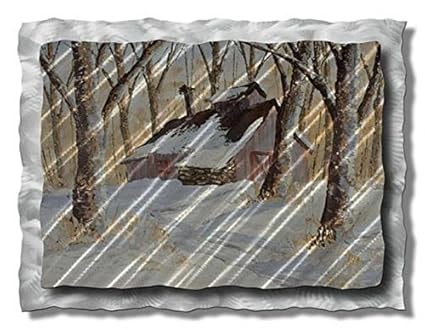 Amazon Com All My Walls Lan00028 Cabin Landscape Metal Art
