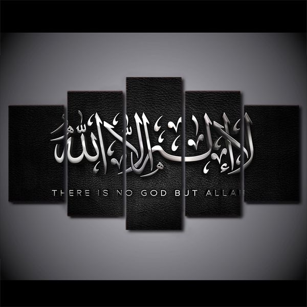 No Frame Hd 5 Panels Islamic Art Words Canvas Painting Prints Picture Wall Art Home Decor For Living Room