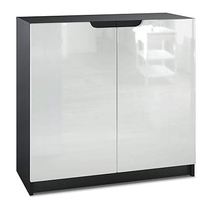 Vladon Commode Armoire De Bureau Rangement Logan Corps En Noir Mat Facades En Blanc Haute Brillance