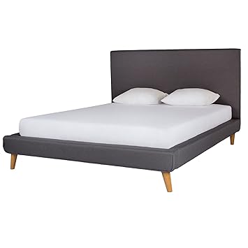 Design Bett Gepolstert Stoff Grau Und Holz 140 X 200 Cm