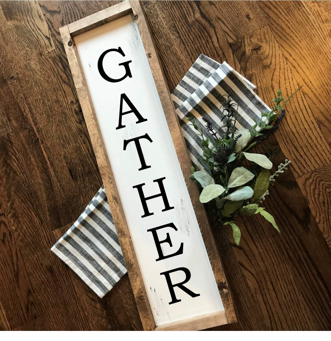 Gather Vertical Hand Painted Over Sized Wooden Sign Modern Farmhouse Style Fixer Upper Inspired Home Decor