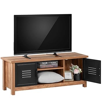 Kealive Tv Stand Wood Media Console For Tv Up To 50 Modern Rustic Entertainment Center Solid Carbon Steel Cabinet Doors And 2 Shelf Storage Video