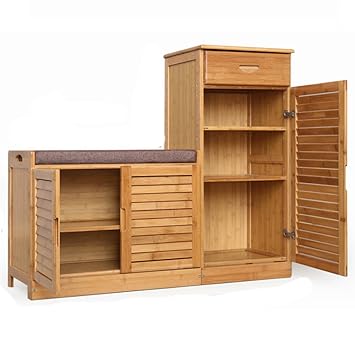 119 71 22 De Reduction Meubles En Bambou 2 Portes Armoire A Chaussures Avec Tiroir Et Coussin De Siege Amovible Armoire A Chaussures Unite De