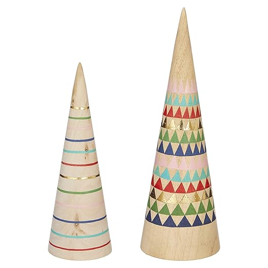 Raz Imports Whimsical Wooden Christmas Tree Set Boho Christmas Decor Modern Christmas Decor Set Of 2