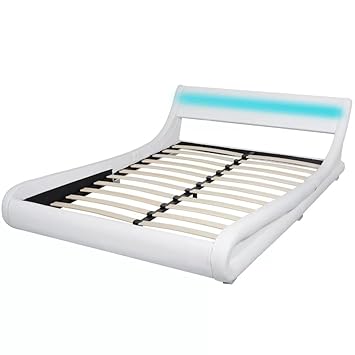 Daonanba Stabiler Holz Bett Rahmen Kunstleder Polster Led