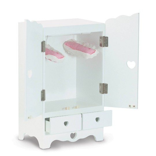 Melissa Doug White Wooden Doll Armoire Closet With 2 Hangers 12 X 20 X 9 Inches
